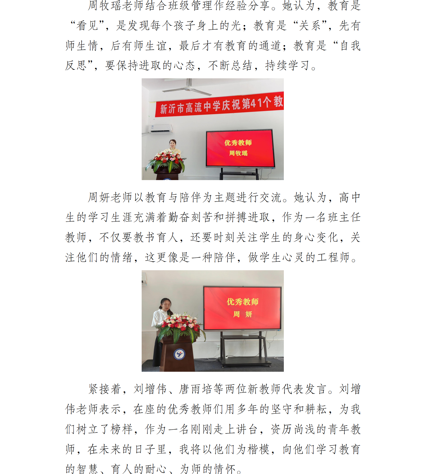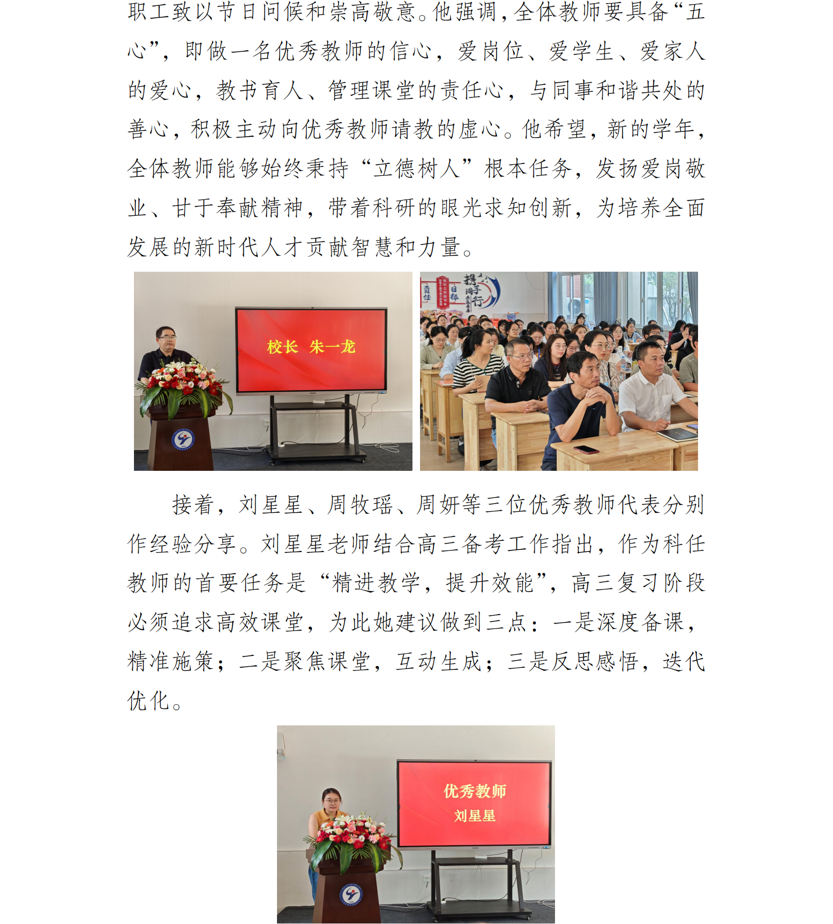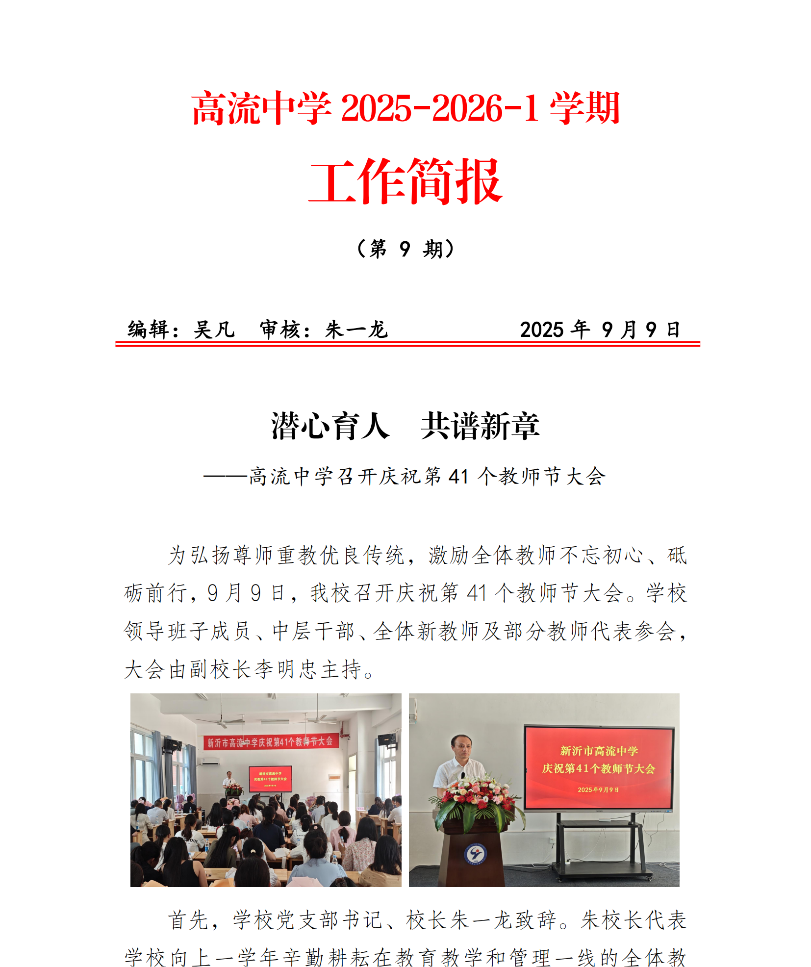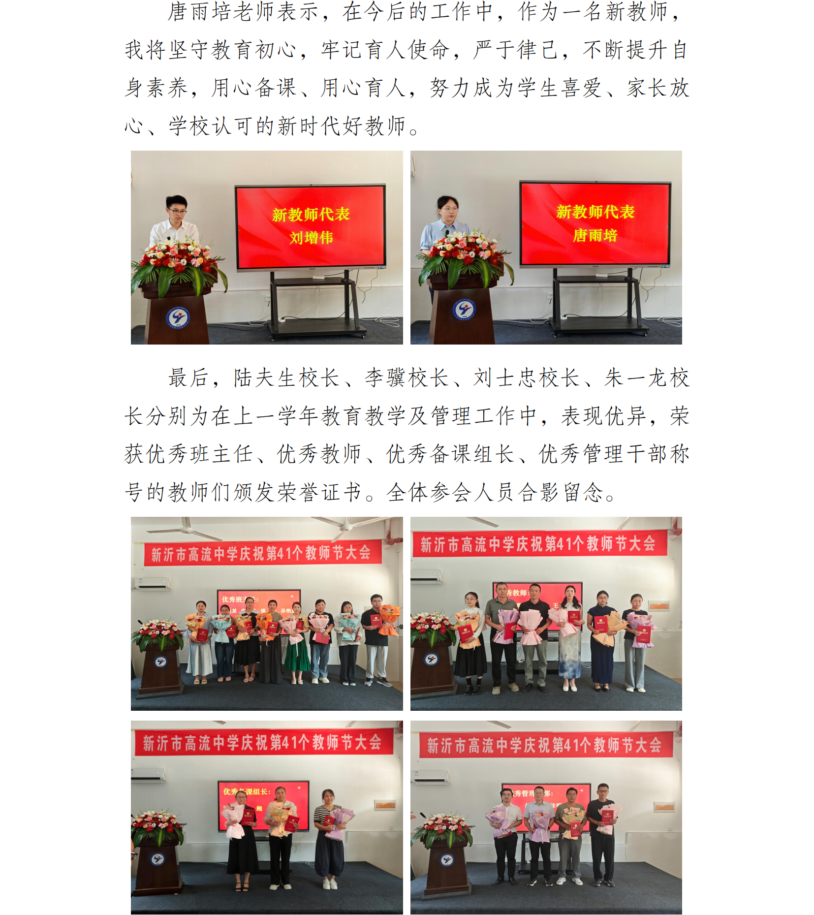 潜心育人 共谱新章 ——高流中学召开庆祝第 41 个教师节大会