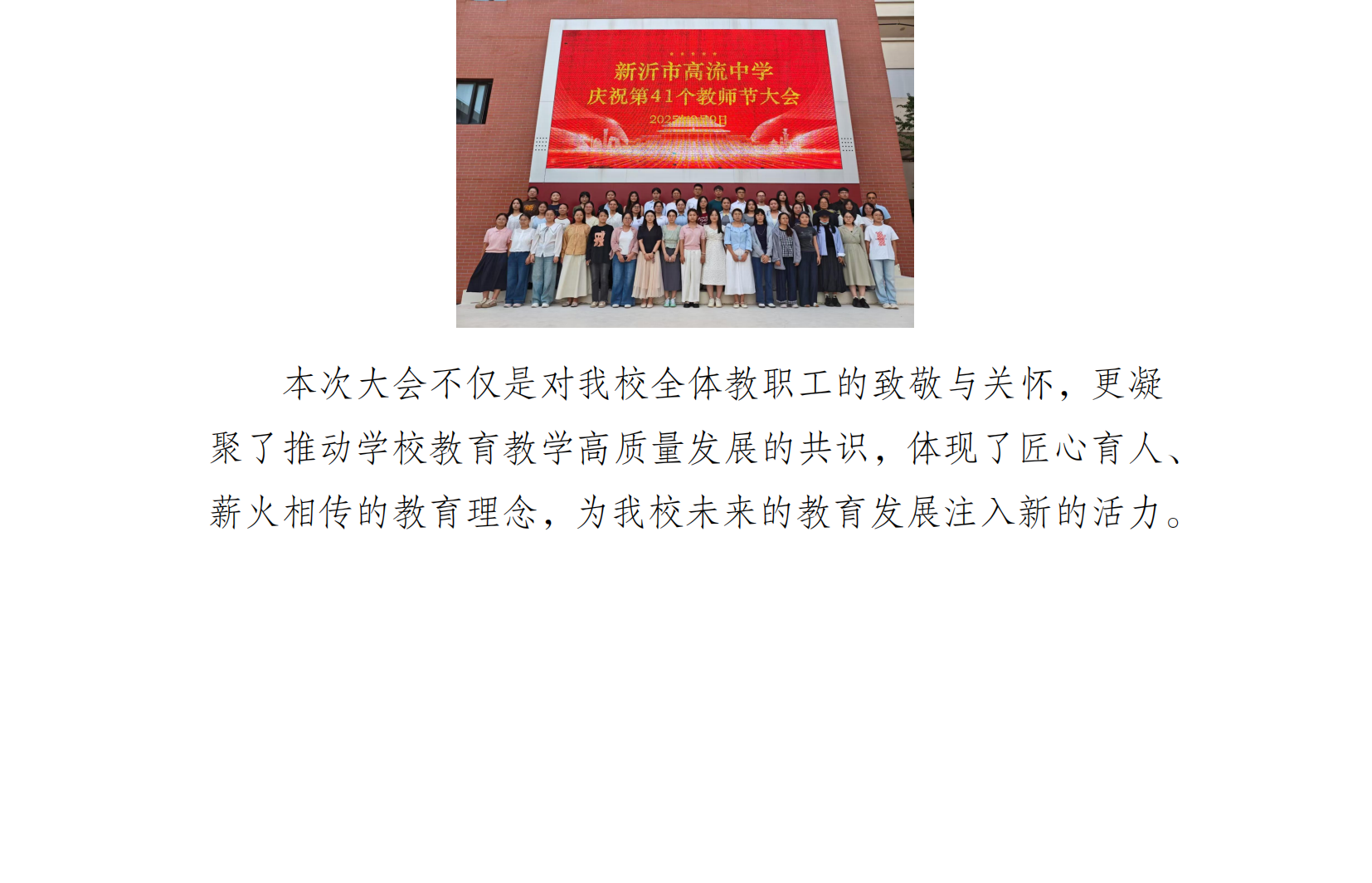 > 潜心育人 共谱新章 ——高流中学召开庆祝第 41 个教师节大会