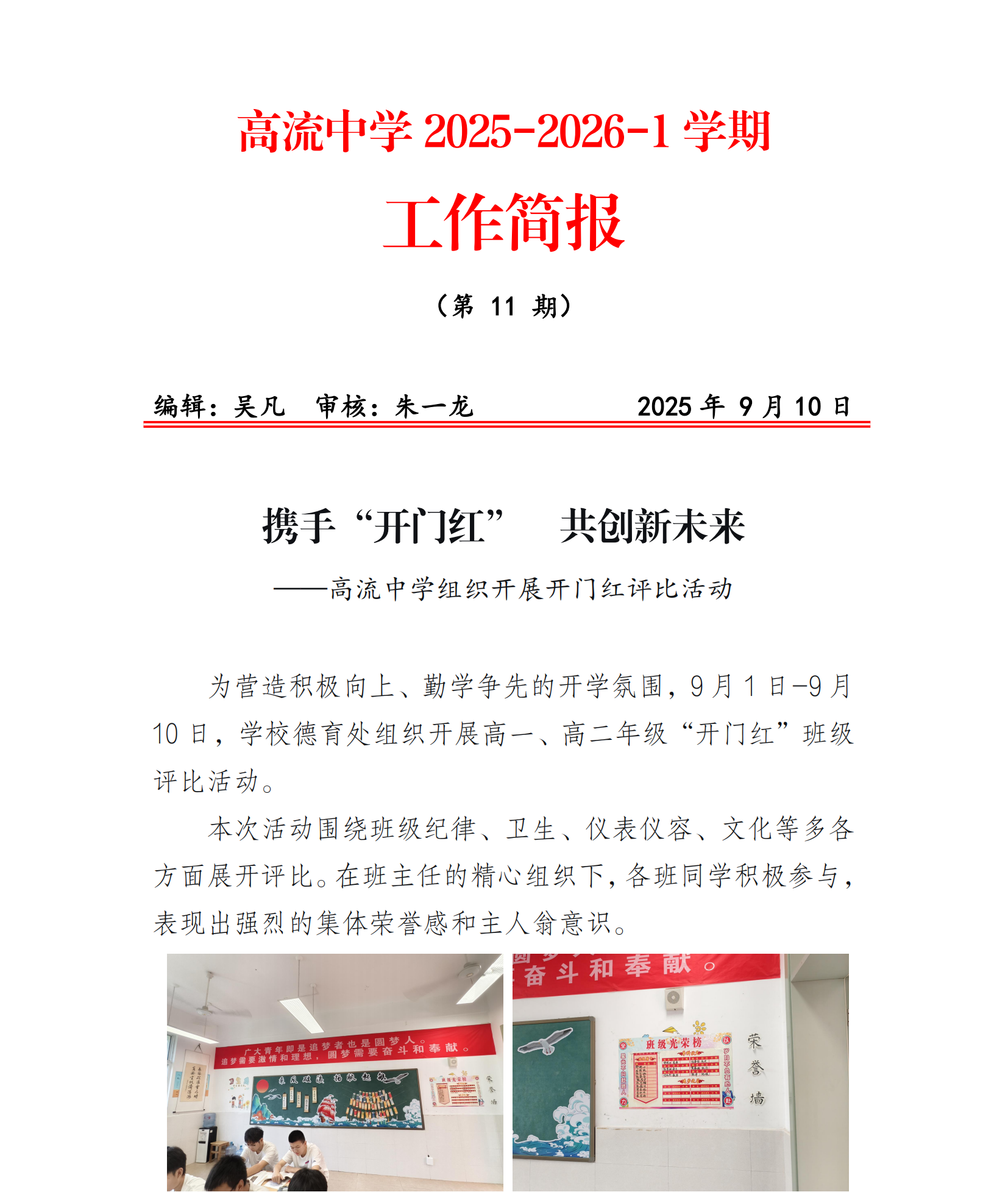 > 携手“开门红” 共创新未来 ——高流中学组织开展开门红评比活动