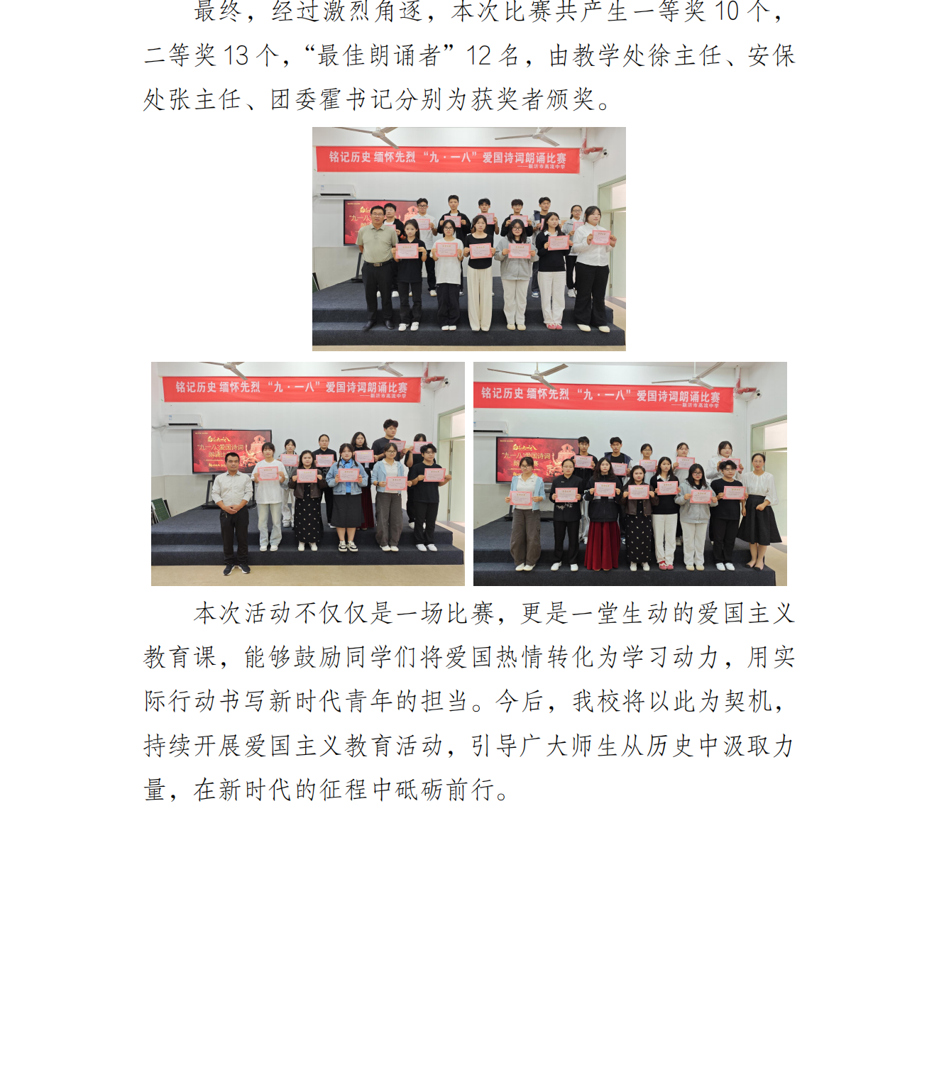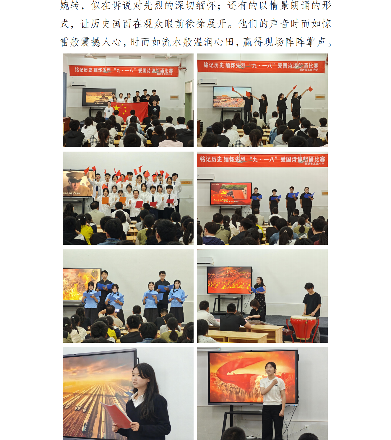 铭记历史 缅怀先烈 ——高流中学开展纪念“九·一八”爱国诗词朗诵比赛