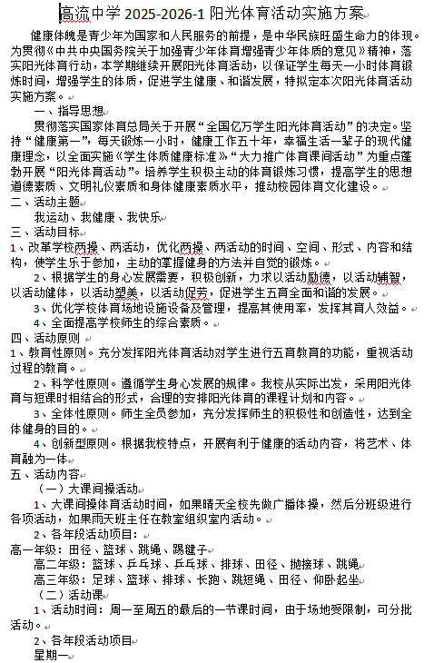 8.新沂市高流中学2024-2025-1学期 体 育 课 外 活 动 表